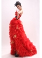 Strapless High-low For 2013 Prom Dress With Appliques Bowknot and Ruffles