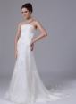 Strapless Lace Column Tulle Court Train 2012 Romantic Wedding Dress In Ames Iowa