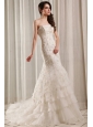 Strapless Mermaid Embroidery and Ruffles Court Train Wedding Dress