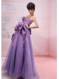 Home >  Prom Dresses >  Elegant Prom Dresses > Strapless Organza Beading and Handle-Made Flowers Lilac 2013 Prom Dress A-Line / Princess