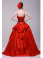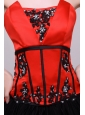 Strapless Red and Black Quinceanera Dress with Appliques with Beading