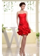 Strapless Red and Hand Made Flower For Prom Dress With Pick-ups