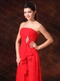 Strapless Red Empire Chiffon 2013 Dama dress on Sale