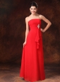 Strapless Red Empire Chiffon 2013 Prom Gowns With Beading Floor-length For Customize