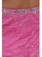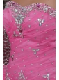 Strapless Rose Pink Organza Beading and Ruffles Quinceanera Dress