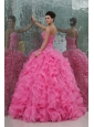 Home >  Quinceanera Dresses >  Luxurious Quinceanera Dresses > Strapless Rose Pink Organza Beading and Ruffles Quinceanera Dress