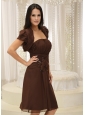 This tea-length dress is fabulous with a jacket to complete it's elegence.The neckline of this strapless dress is decorated with ruching details create a glamorous look while coordinate with the hand flower on the waistline and the middle of the bodice.Ruching with different paterns on the bust and waist give you a distingish look to flirt your shape.The flowing skirt with chiffon fabric make the dress fit you comfortable.A zipper up back completes the look.This dress is so gorgeous for you!