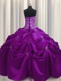 Home >  Quinceanera Dresses >  Custom Made Quinceanera Dresses > Strapless Sleeveless Ball Gown Prom Dress Floor Length Beading and Appliques and Embroidery Eggplant Purple Taffeta