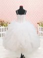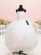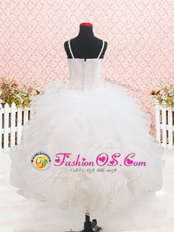 Home >  Special Occasion Dresses >  Cheap Flower Girl Dresses > Strapless Sleeveless Flower Girl Dresses for Less Floor Length Beading and Lace and Ruffles White Organza