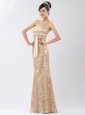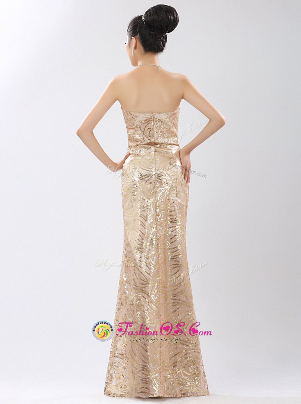 Home >  Prom Dresses >  Perfect Prom Dresses > Strapless Sleeveless Homecoming Dress Floor Length Appliques and Belt Champagne Sequined