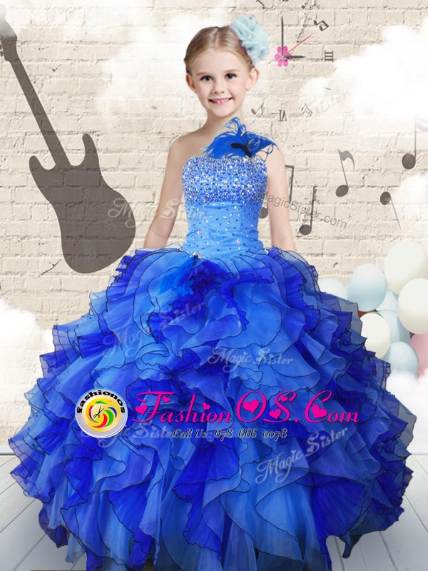 Strapless Sleeveless Organza Flower Girl Dresses for Less Beading and Ruffles Lace Up