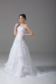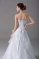 Strapless Sleeveless Organza Wedding Dresses Hand Made Flower Brush Train Lace Up