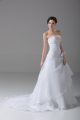 Home >  Wedding Dresses >  Low Cost Wedding Dresses > Strapless Sleeveless Organza Wedding Dresses Hand Made Flower Brush Train Lace Up