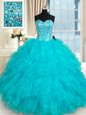 Strapless Sleeveless Quince Ball Gowns Floor Length Beading and Embroidery Royal Blue Satin