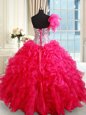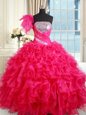 Strapless Sleeveless Quince Ball Gowns Floor Length Sequins Hot Pink Organza