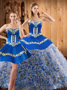 Strapless Sleeveless Quince Ball Gowns With Train Sweep Train Embroidery Multi-color Satin and Fabric With Rolling Flowers