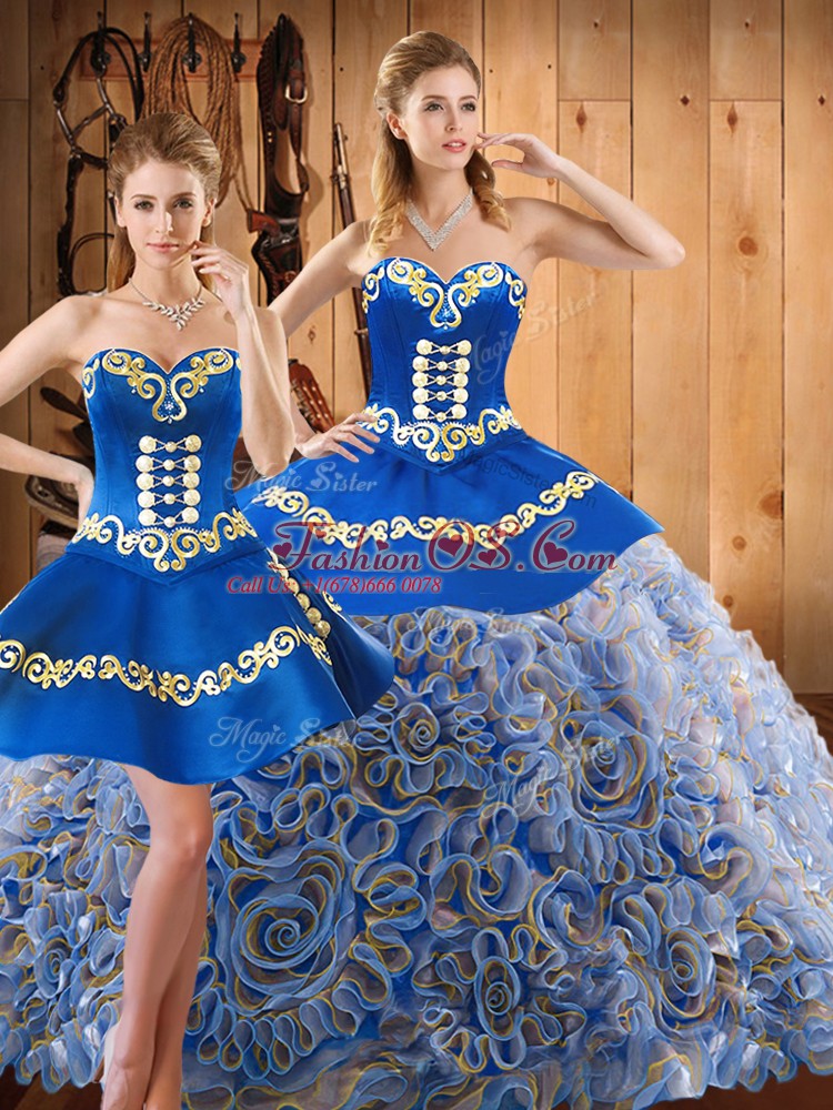 Home >  Quinceanera Dresses >  Detachable Quinceanera Skirts > Strapless Sleeveless Quince Ball Gowns With Train Sweep Train Embroidery Multi-color Satin and Fabric With Rolling Flowers