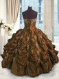Strapless Sleeveless Quinceanera Dress Floor Length Beading and Pick Ups Brown Taffeta