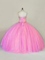 Strapless Sleeveless Sweet 16 Dress Floor Length Beading Pink Tulle