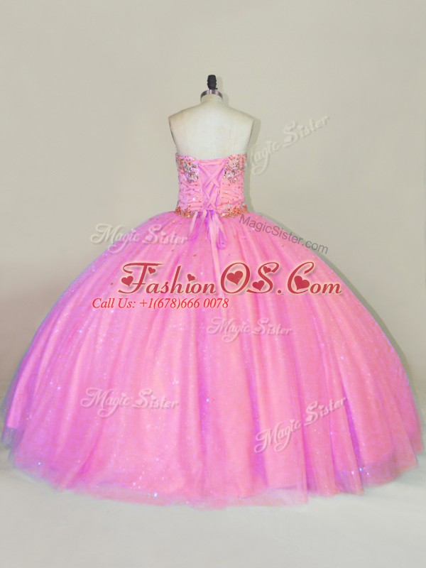 Home >  Quinceanera Dresses >  Fast Delivery Quinceanera Dresses > Strapless Sleeveless Sweet 16 Dress Floor Length Beading Pink Tulle