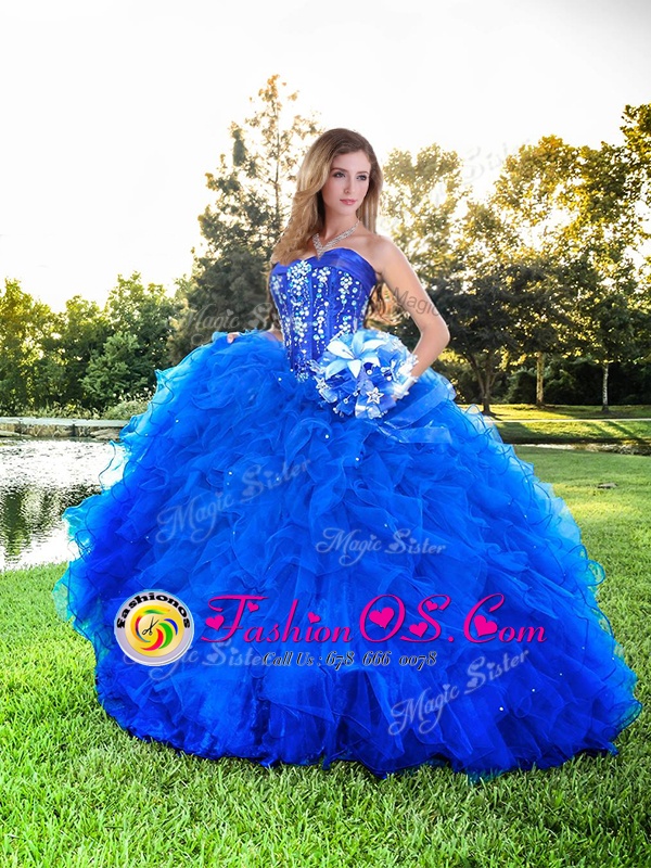 Strapless Sleeveless Sweet 16 Quinceanera Dress Floor Length Beading and Ruffles Royal Blue Tulle