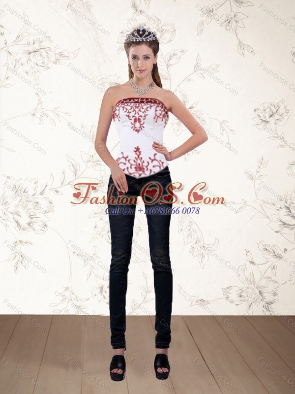 Home >  Accessories >  Corset > Strapless White and Wine Red Corset Dress with Embroidery