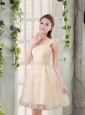 Home >  Prom Dresses >  Short Prom Dresses > Straps A Line Champagne Prom Dress with Appliques