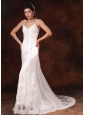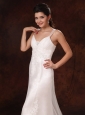Straps And V-neck With Lace Appliques Decorate Waist Court Train 2013 New Styles Wedding Dress For Customize