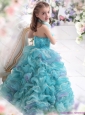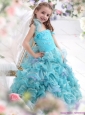 Straps Appliques and Ruffled Layers Pageant Dresses for Kids in Aque Blue