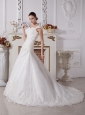 Straps Appliques Decorate Waist For Modest   Wedding Dress