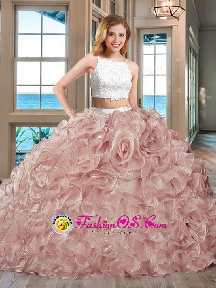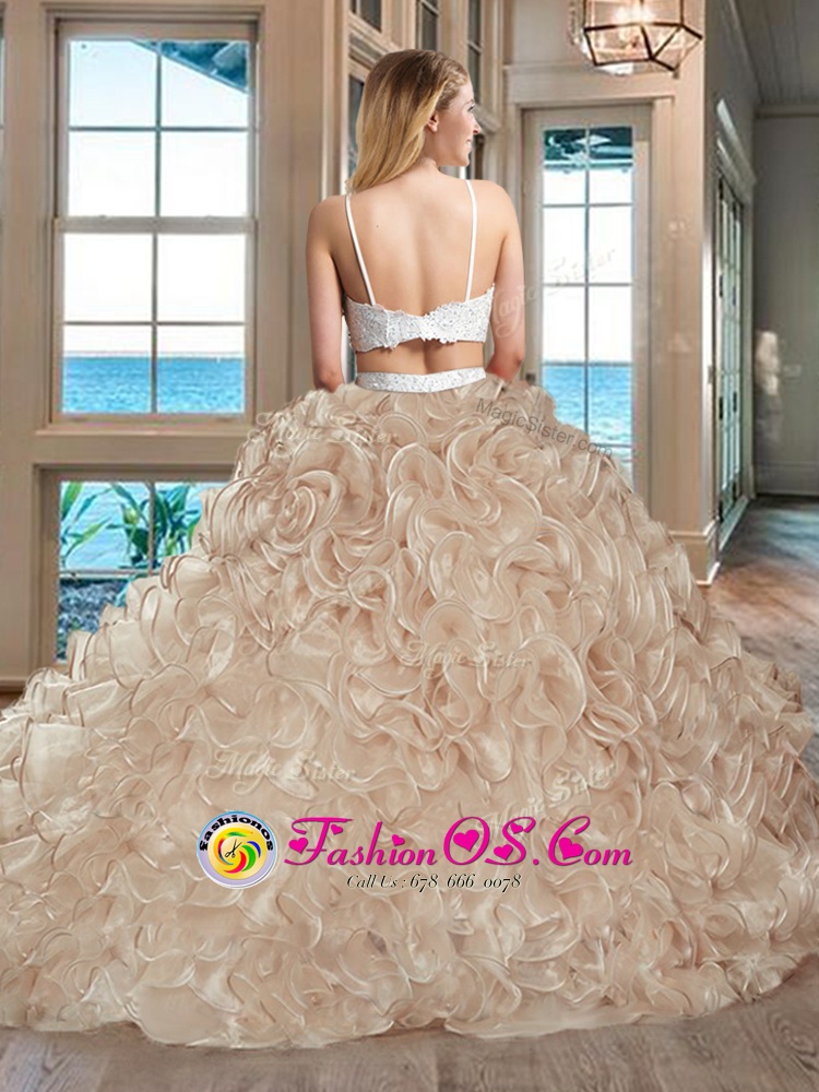 Home >  Quinceanera Dresses >  Cheap Quinceanera Dresses > Straps Backless Tulle Sleeveless Floor Length Quince Ball Gowns and Beading and Ruffles