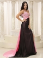 Straps Beaded Decorate Bust Ruch Chiffon and Elastin Woven Satin For 2013 Evening Dress