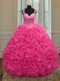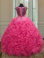 Home >  Quinceanera Dresses >  Puffy Quinceanera Dresses > Straps Beading and Ruffles Ball Gown Prom Dress Hot Pink Zipper Sleeveless Floor Length