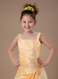 Straps Beading Organza Yellow A-Line Flower Girl Dress