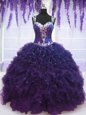 Home >  Quinceanera Dresses >  Perfect Quinceanera Dresses > Straps Blue Sleeveless Floor Length Beading and Ruffles Zipper Quinceanera Dresses