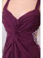 Straps Chiffon Beading and High Silt Prom Dress with Criss-cross Back