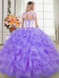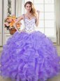 Straps Floor Length Lace Up Sweet 16 Dress Lavender and In for Military Ball and Sweet 16 and Quinceanera with Beading and Lace and Ruffles