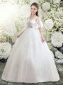 Straps Half Sleeves Tulle Wedding Gown Beading and Appliques Lace Up