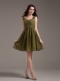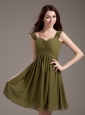 Straps Knee-length Olive Green Chiffon 2013 Bridemaid Dress