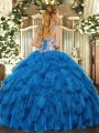 Straps Sleeveless 15th Birthday Dress Floor Length Beading and Ruffles Purple Organza