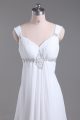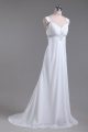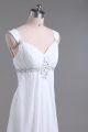 Straps Sleeveless Chiffon Wedding Dress Beading Sweep Train Lace Up
