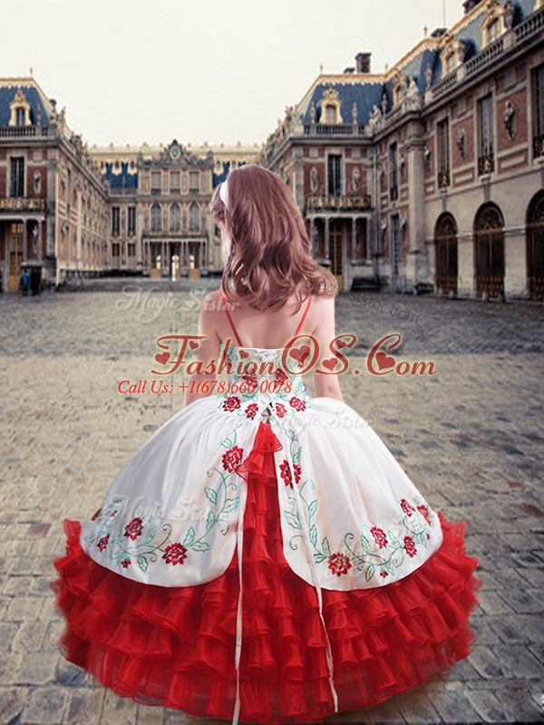 Straps Sleeveless Embroidery and Ruffles Lace Up Child Pageant Dress