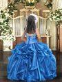 Straps Sleeveless Kids Formal Wear Floor Length Beading Hot Pink Organza