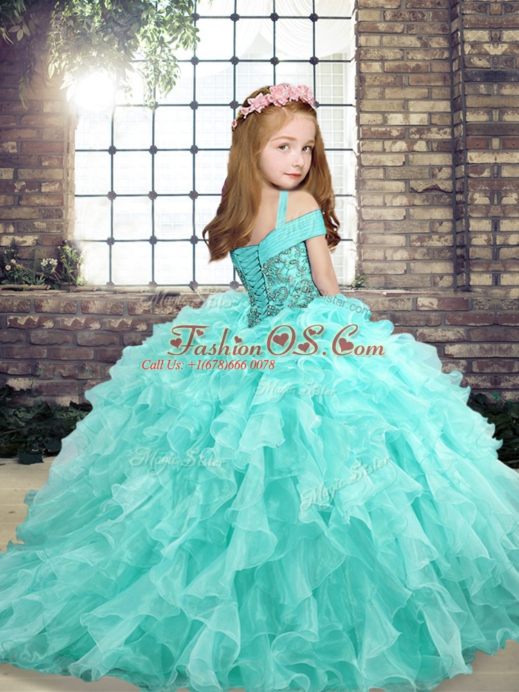 Straps Sleeveless Kids Pageant Dress Floor Length Beading and Ruffles Lavender Organza