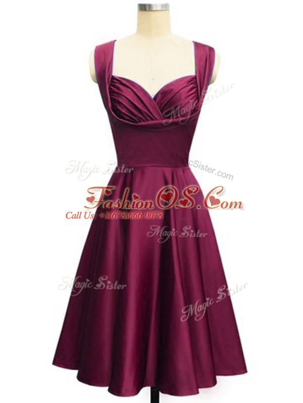 Straps Sleeveless Lace Up Bridesmaid Dress Burgundy Taffeta
