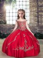 Straps Sleeveless Lace Up Kids Formal Wear Red Tulle