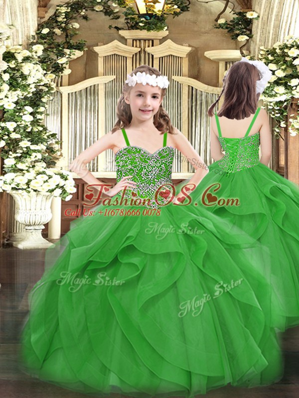 Home >  Special Occasion Dresses >  Beautiful Kids Pageant Dresses > Straps Sleeveless Lace Up Pageant Dress for Womens Green Tulle