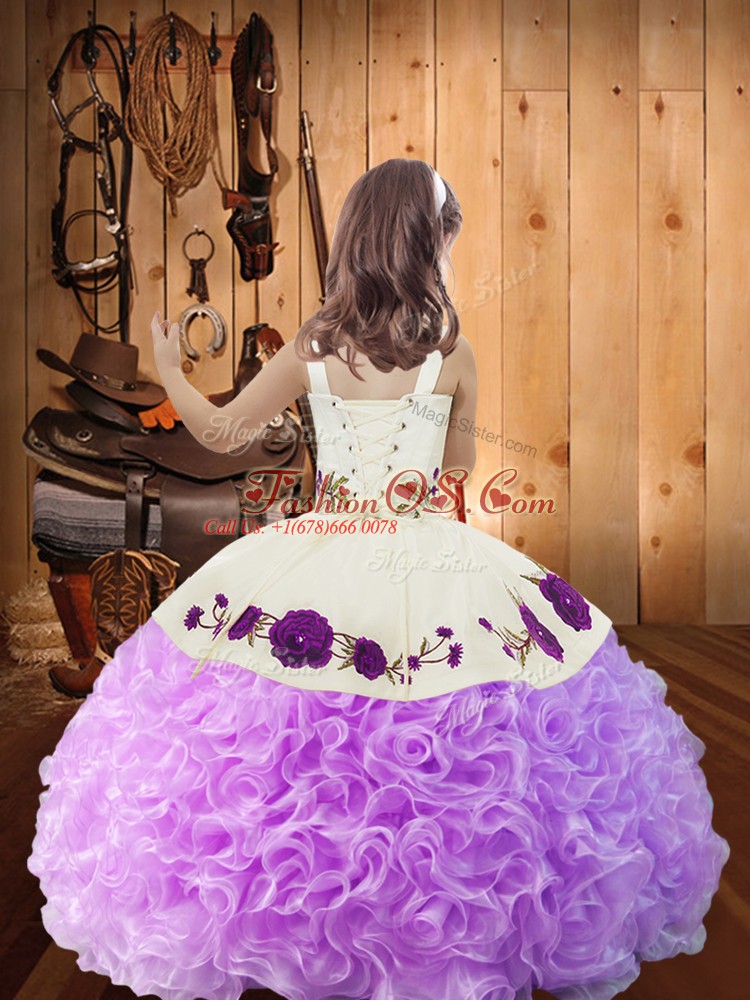 Home >  Special Occasion Dresses >  Beautiful Kids Pageant Dresses > Straps Sleeveless Lace Up Pageant Dress Toddler Lilac Fabric With Rolling Flowers