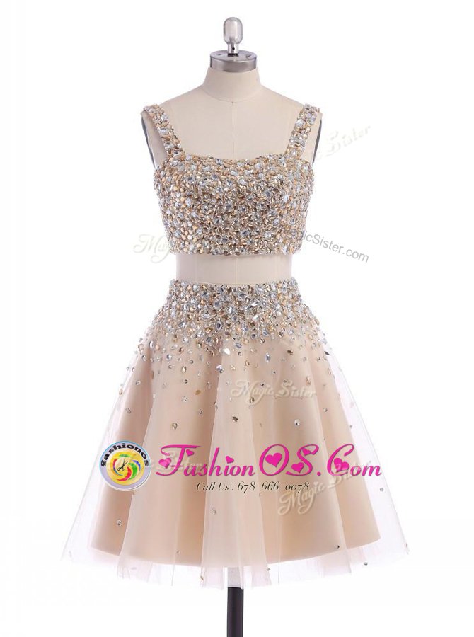 Straps Sleeveless Organza Cocktail Dress Beading Zipper