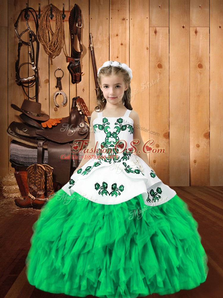 Home >  Special Occasion Dresses >  Lovely Little Girl Pageant Dresses > Straps Sleeveless Organza Kids Formal Wear Embroidery and Ruffles Lace Up